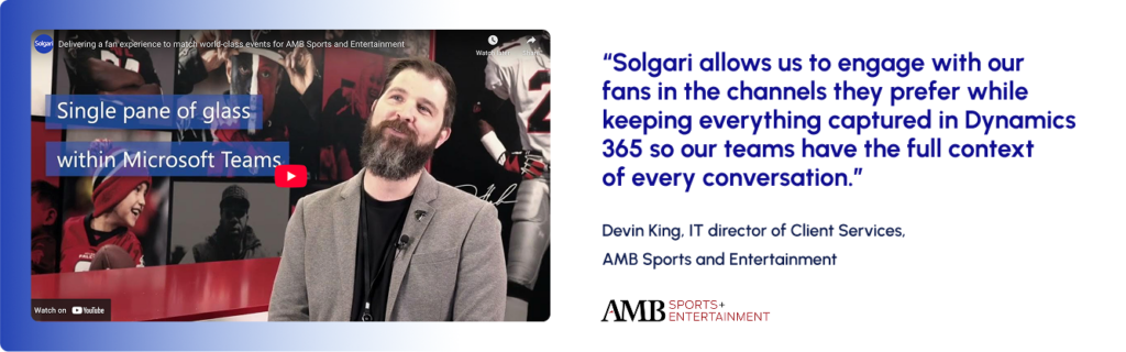 With Solgari embedded in Microsoft Teams and Dynamics 365, fan communications across voice, SMS, and email are captured directly into the CRM record. Staff can engage fans through the same tools they already use, while leadership gains a full picture of every interaction.